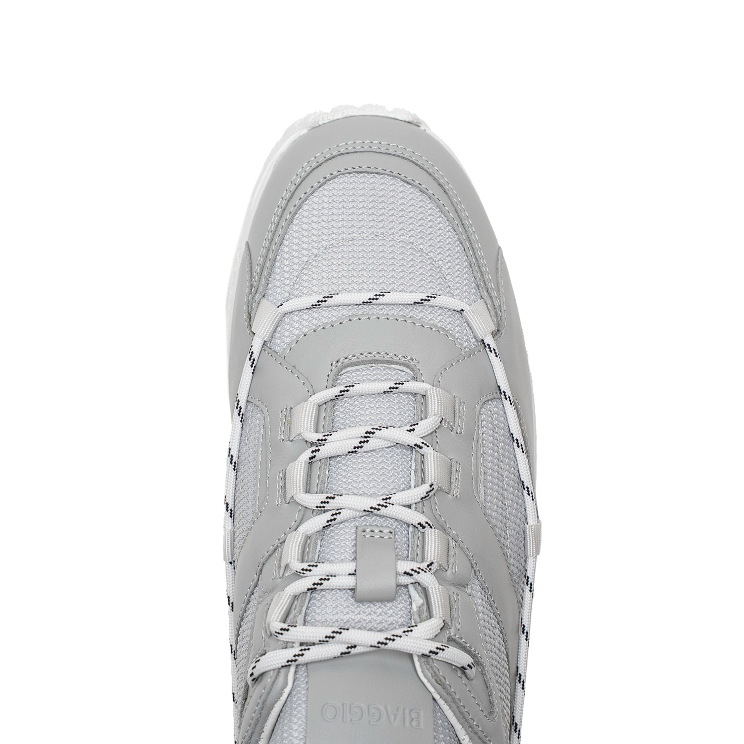 - Partea superioară: piele naturală gri de vițel si material textil gri